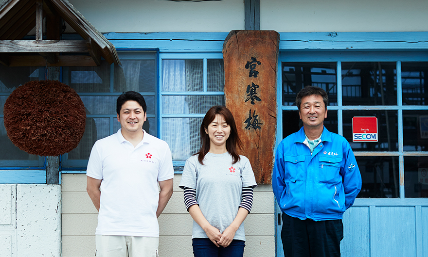 Kanbai Shuzo, the producers of Miyakanbai sake, are the only cultivation brewers in Miyagi prefecture. Cultivation brewers are those extra dedicated individuals who manage all processes of the creation of their sake starting with rice cultivation. Both rice farming and brewing are carried out in the endless countryside landscape of the Osaki Plain.Kanbai Shuzo cultivates four types of sake rice on their land, the Aikoku, Hiyori, Miyamanishiki and Yamadanishiki. 20% of their total sake production is made with their home cultivated sake rice and the remaining 80% is made exclusively with Miyagi grown rice from local farmers.
